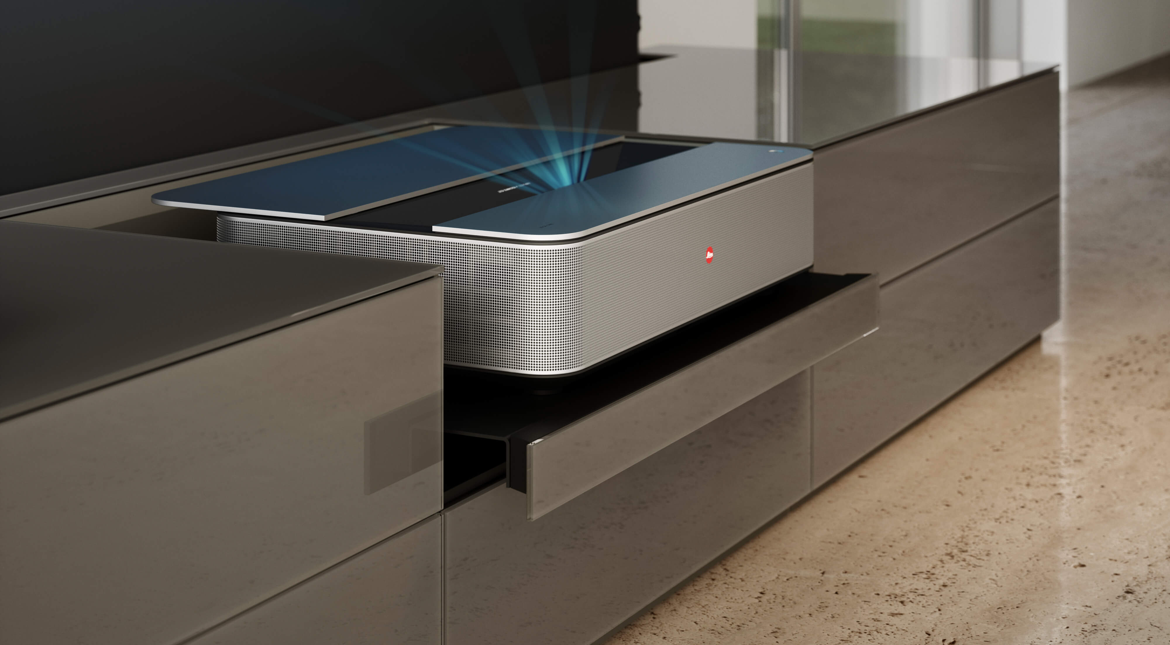 Das Herzstück des SOMA MEDIA? Im maßgefertigten SOMA-Lowboard befindet sich eine im Möbel integrierte Leinwand und der Cine 1 Cinema TV von Leica. Während das Möbelstück mit klaren Linien und einem minimalistischen Design überzeugt, integriert sich der Cine 1 dank seines schlichten Aluminiumgehäuses und der von Bauhaus inspirierten Formsprache nahtlos in das Gesamtbild. Diese dezent-elegante Optik erlaubt es SOMA MEDIA, sich dezent in jeden Raum zu integrieren und gleichzeitig eine Bühne für Technik und Entertainment zu bieten.