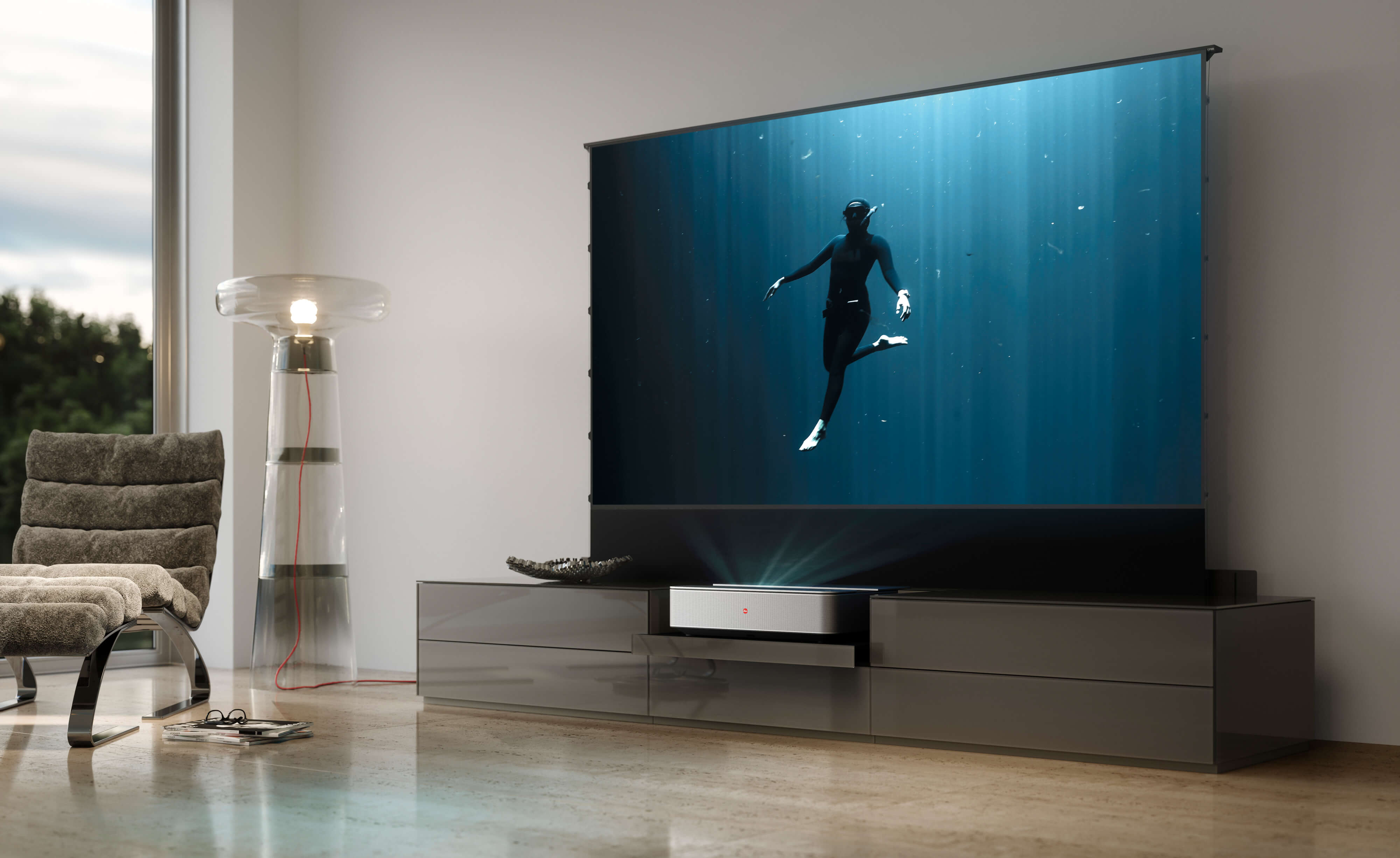 Kettnaker und Leica setzen einen neuen Maßstab für innovative Projektionserlebnisse mit einem gemeinsamen TV-Möbel. Dieses elegante Heimkino-Konzept integriert eine ausfahrbare Leinwand, die bei Bedarf eine großzügige Projektionsfläche bereitstellt und sich bei Nichtgebrauch dezent in Ihren Wohnraum einfügt.